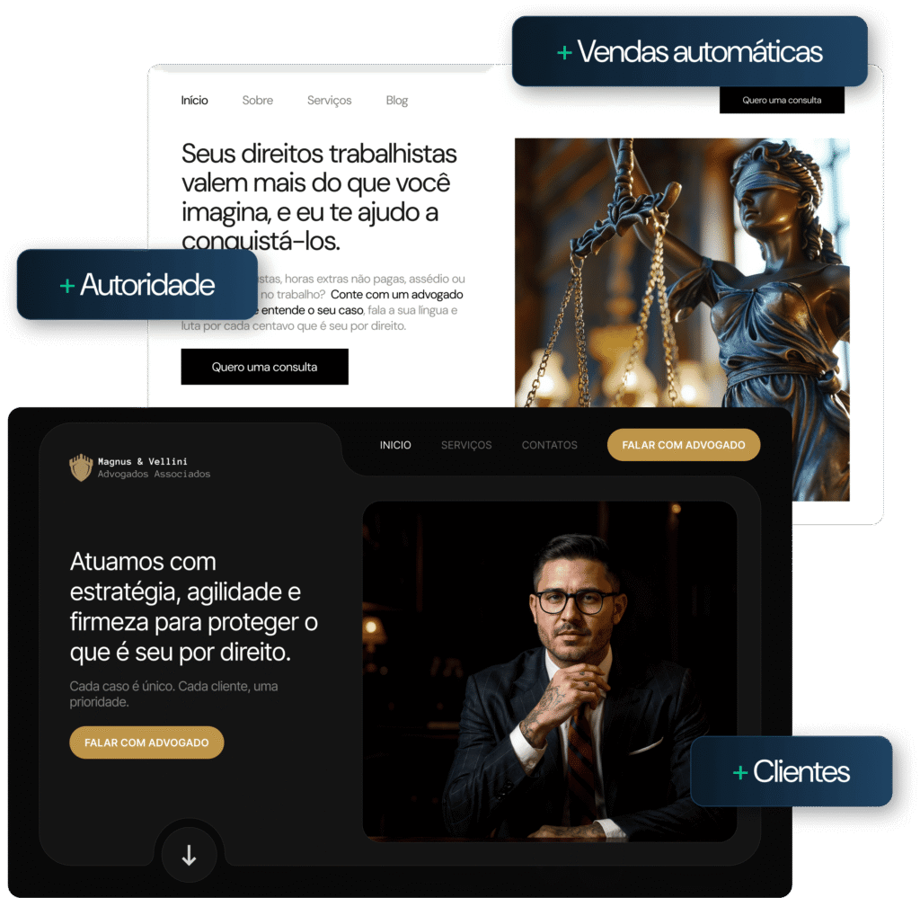 ❌ O cliente tem um caso alto valor (High Ticket). Ele clica no seu link e vê… nada. Só um Linktree. O Fato: Ele não sente segurança. Ele fecha com o escritório grande que tem um site decente, mesmo que você seja melhor.